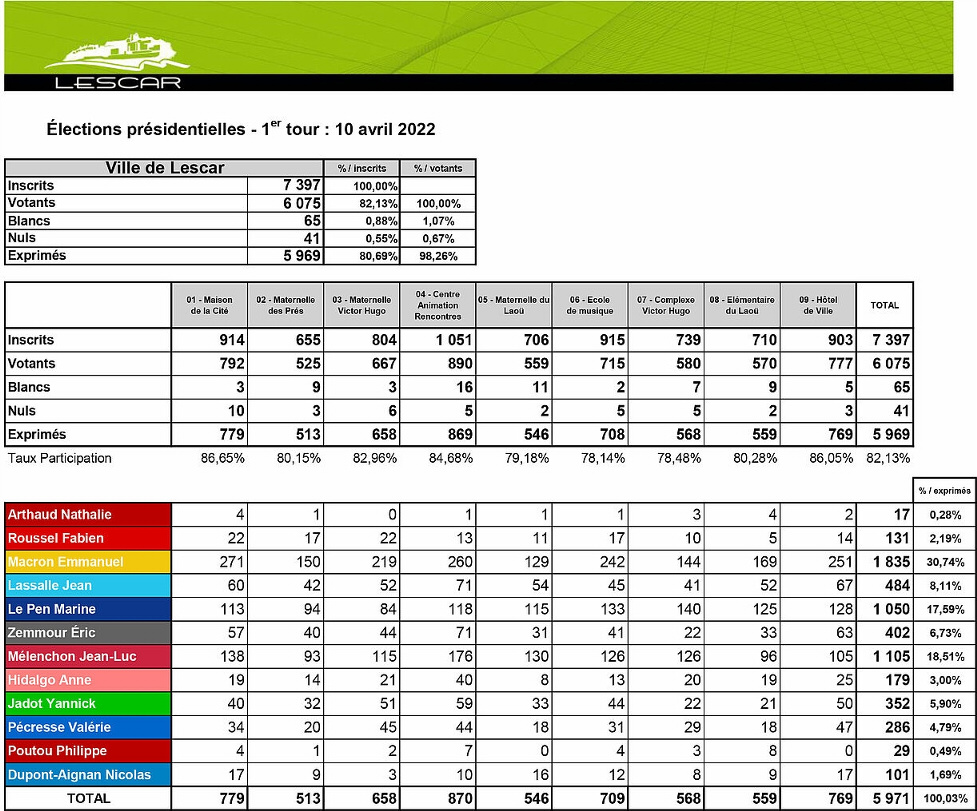 Présidentielle 2022 : Résultats du premier tour à Lescar